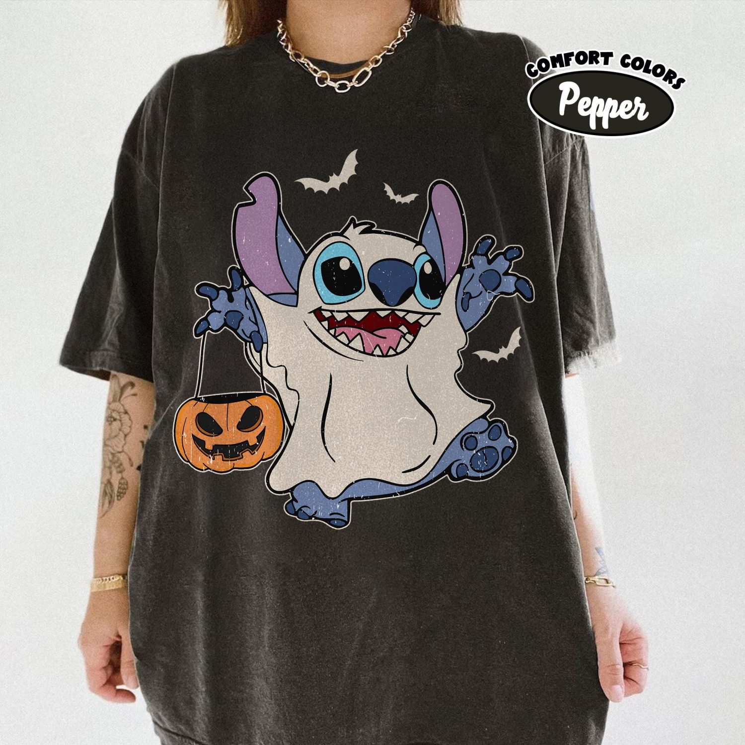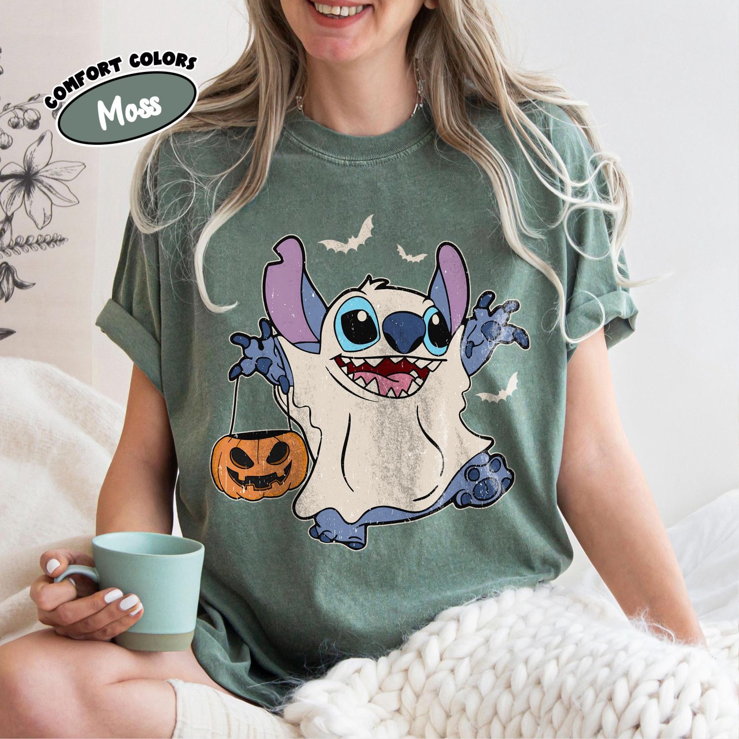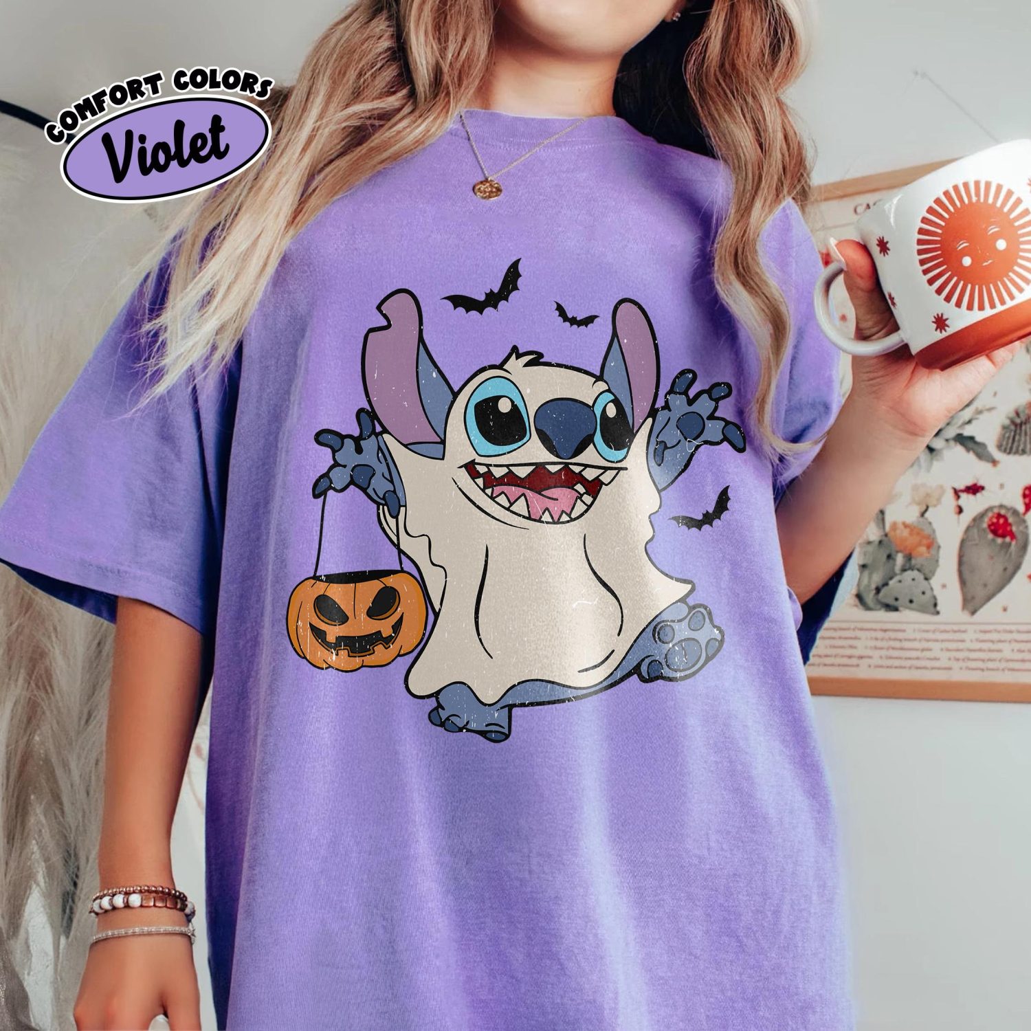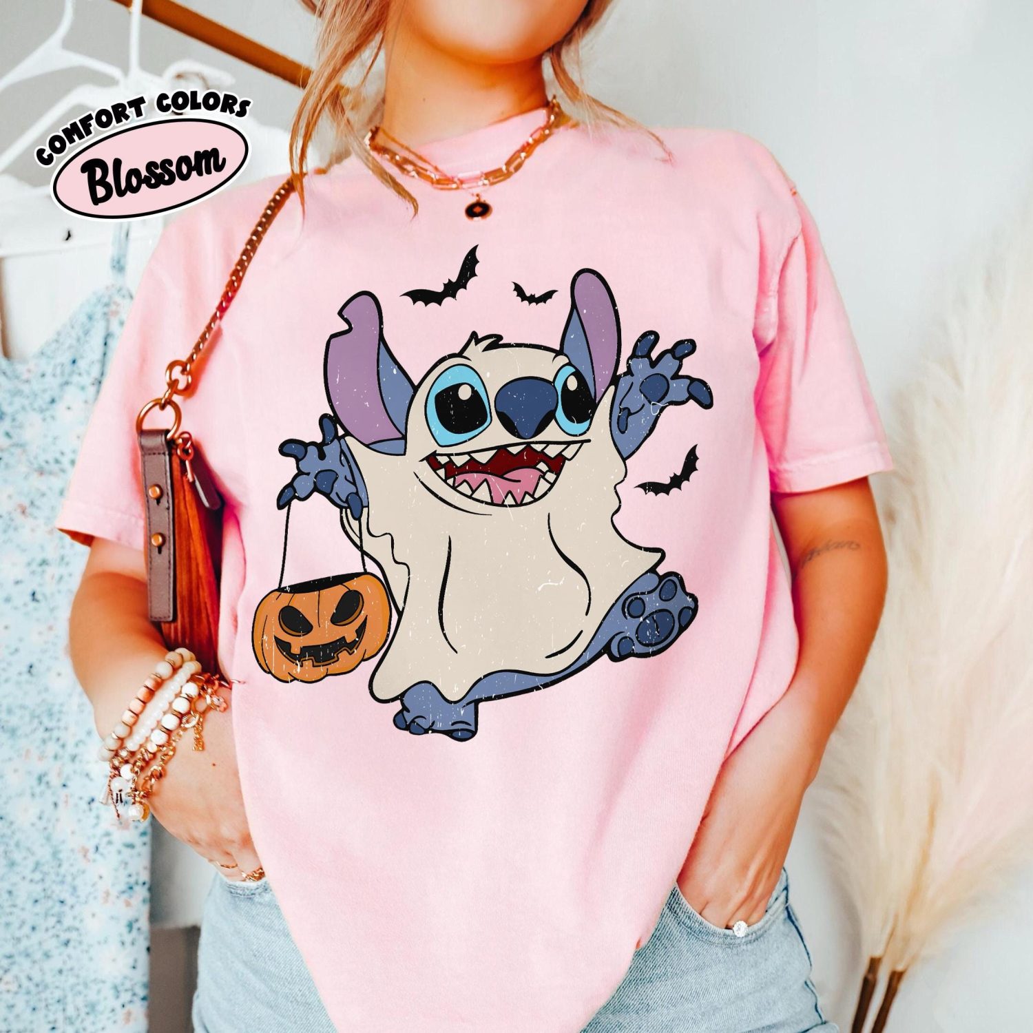 Retro Disney Stitch Halloween Shirt, Pumpkins & Ghost, Disneyland Tee