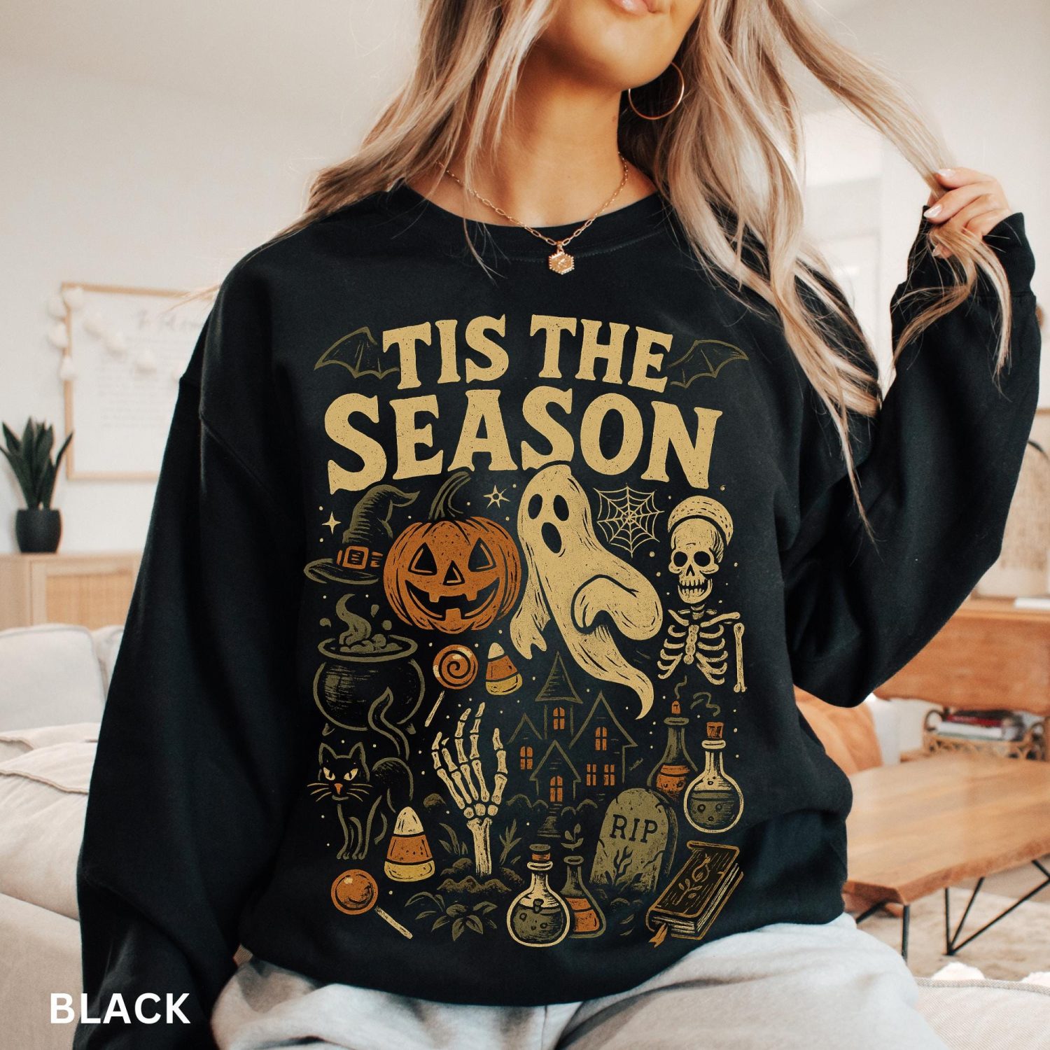 Retro Halloween Sweatshirt, Tis’ the Season, Pumpkin Ghost Crewneck