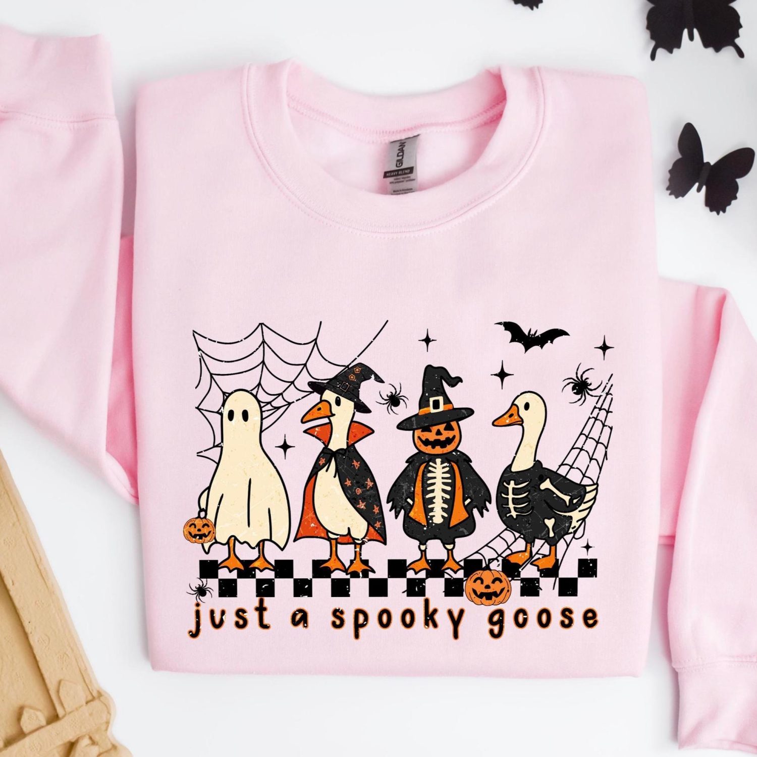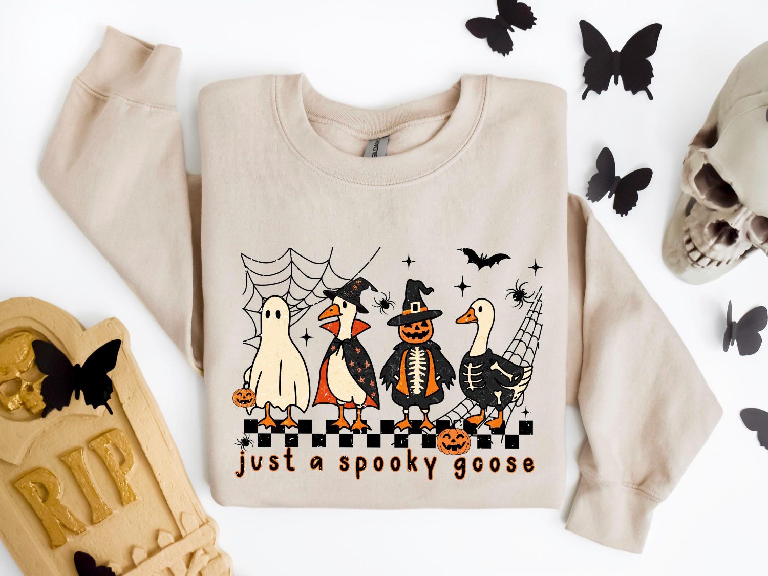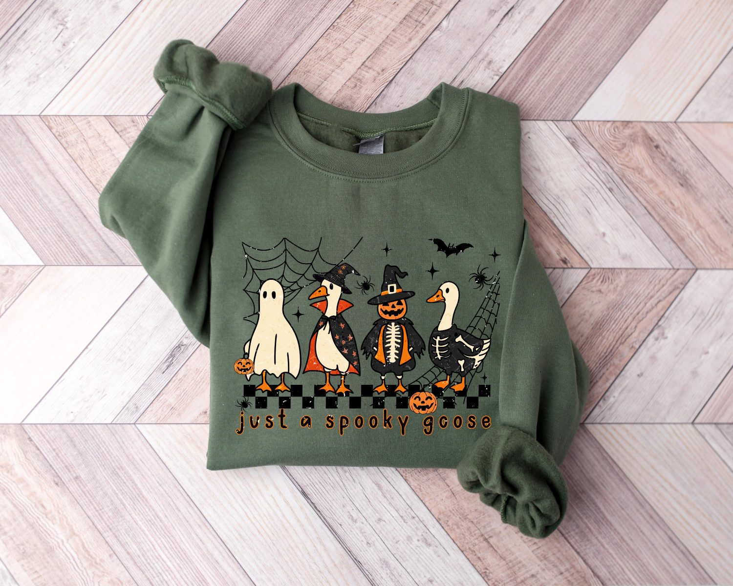 Spooky Goose Sweatshirt, Skeleton Witch Pumpkin, Halloween Gift