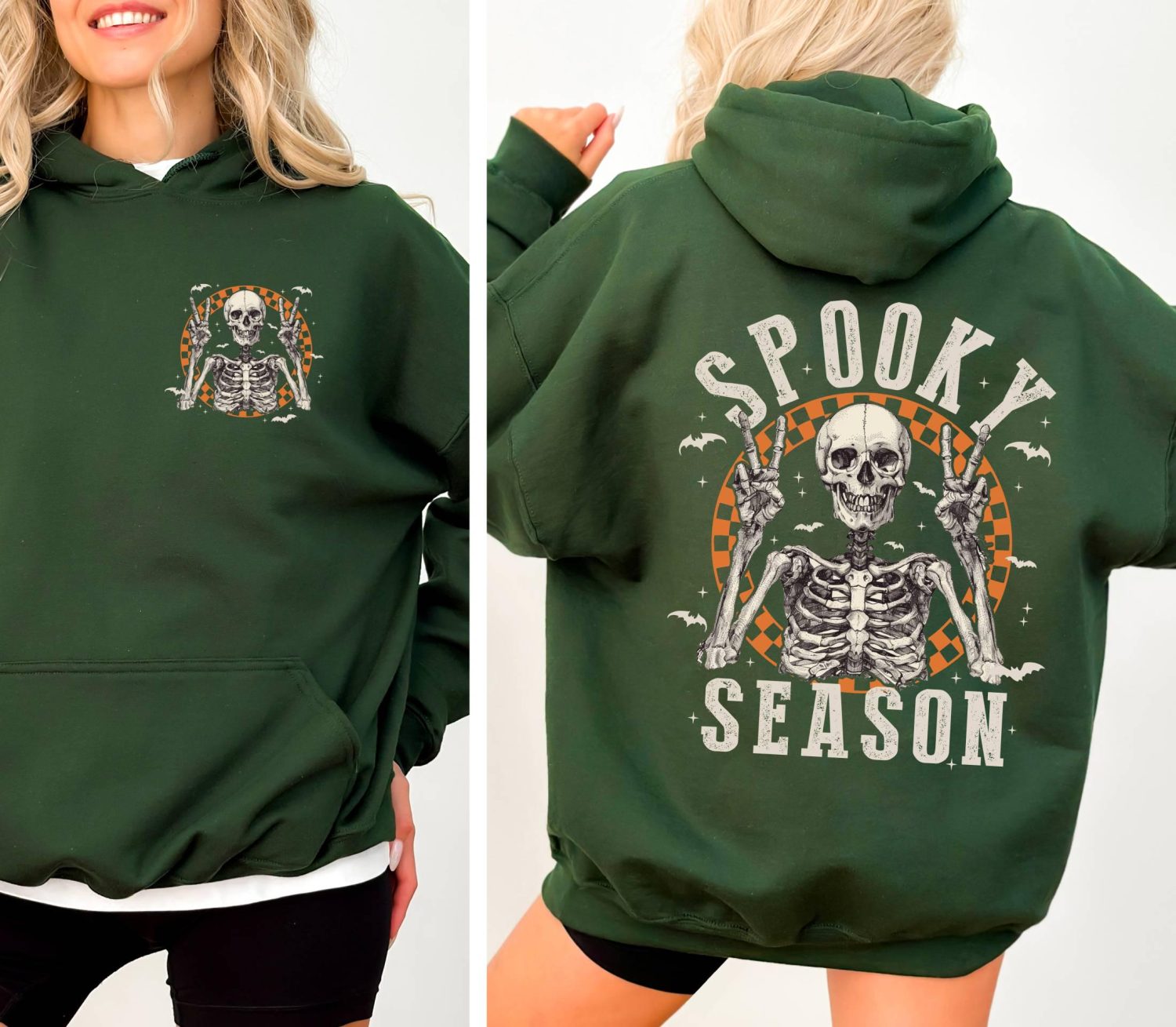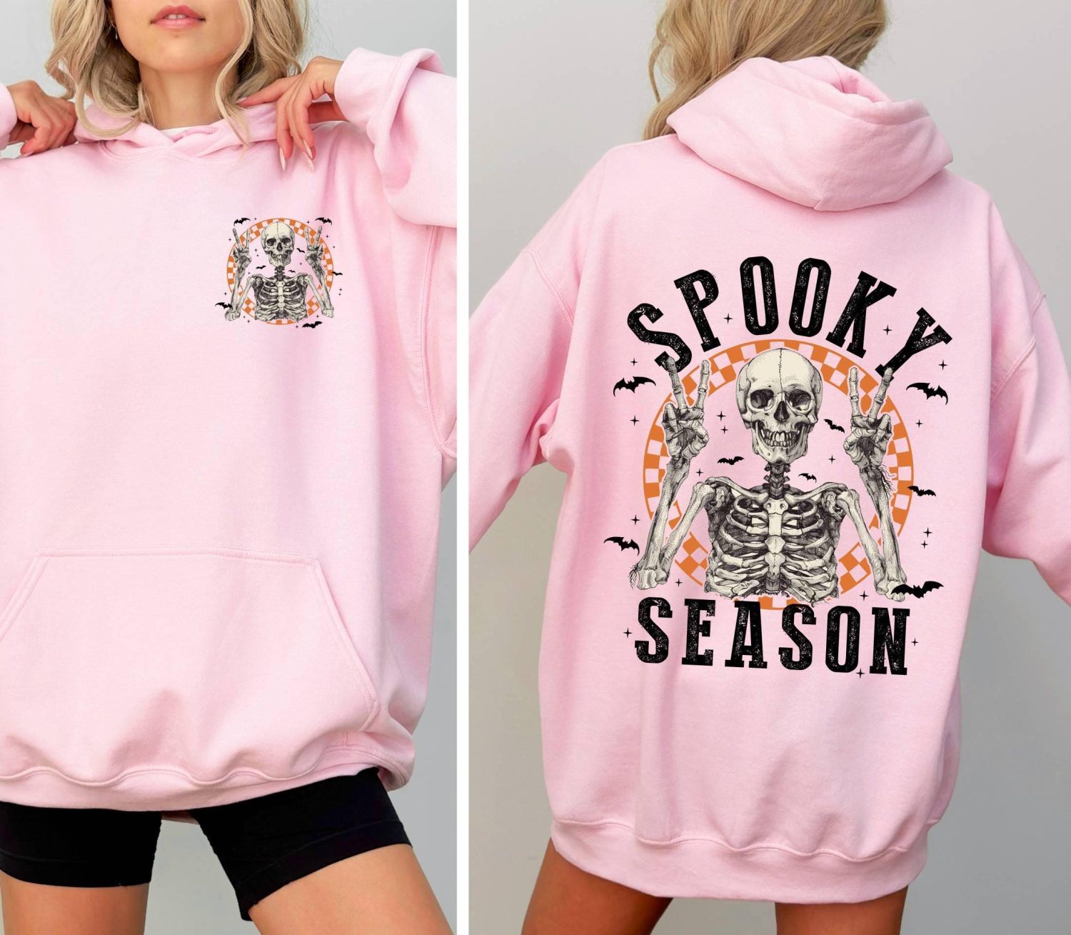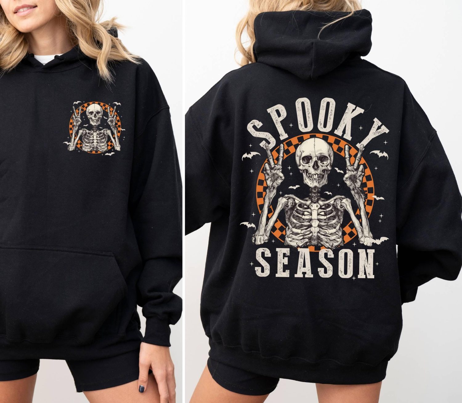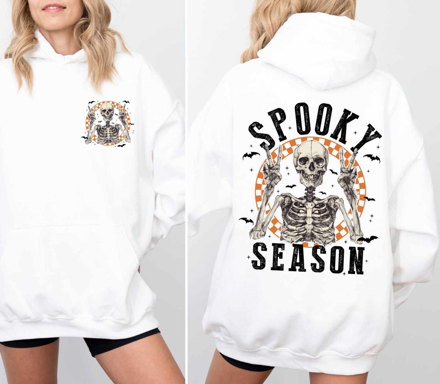 Spooky Season Hoodie, Retro Halloween Skeleton, Women’s Fall Gift